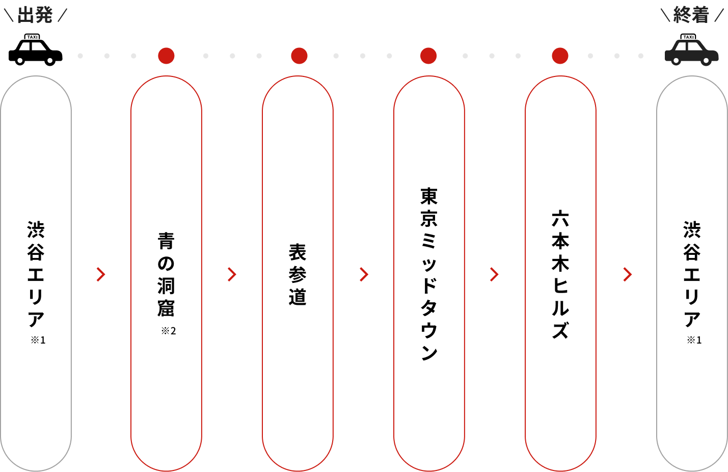 ※1 渋谷駅・恵比寿駅・原宿駅近辺でのご乗車を提案させて頂きます。